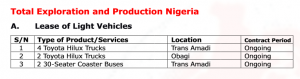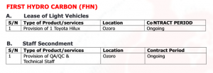 Lease of Light Vehicles,Staff Secondment